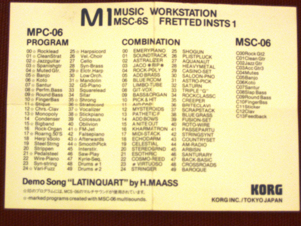 Korg MSC-6S Fretted Insts 1 factory demo song: